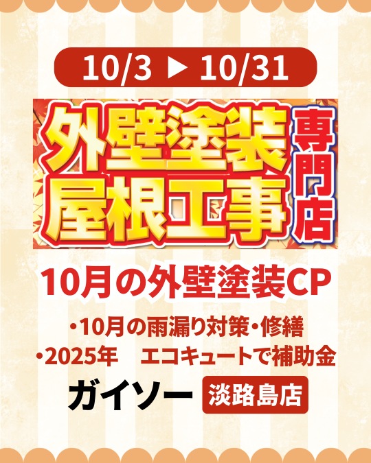 台風による大雨で雨水が正しく排水されないと、建物に負担がかかり、雨樋の破損や雨漏りの原因となる可能性があります。2階以上の雨樋の確認は高さがあり、不安を伴いますので、ぜひガイソー神戸店、ガイソー淡路島店にご相談ください。