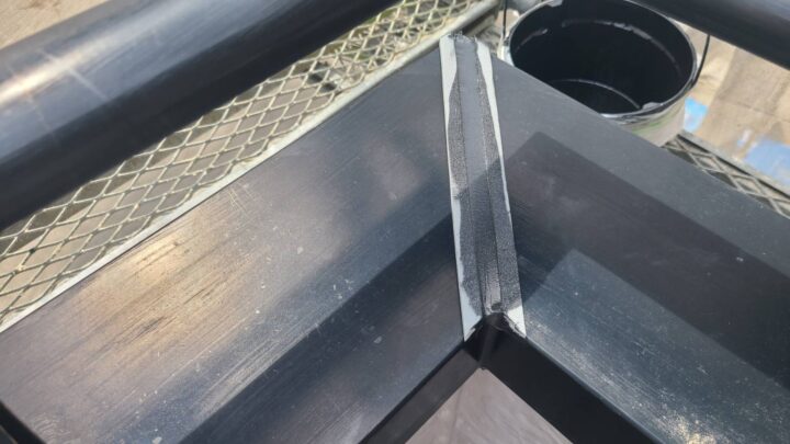 バルコニーの笠木は今回、費用の関係上「ブリッジ工法」で修繕いたしました。ブリッジ工法につきましては、こちらのブログで詳細を記載してます!↓