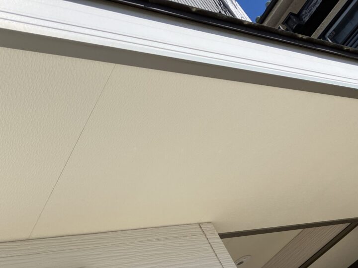 軒天はホワイトで塗装しました。軒天も劣化が進む箇所なので外壁と同じようにメンテナンスが必要です。 -