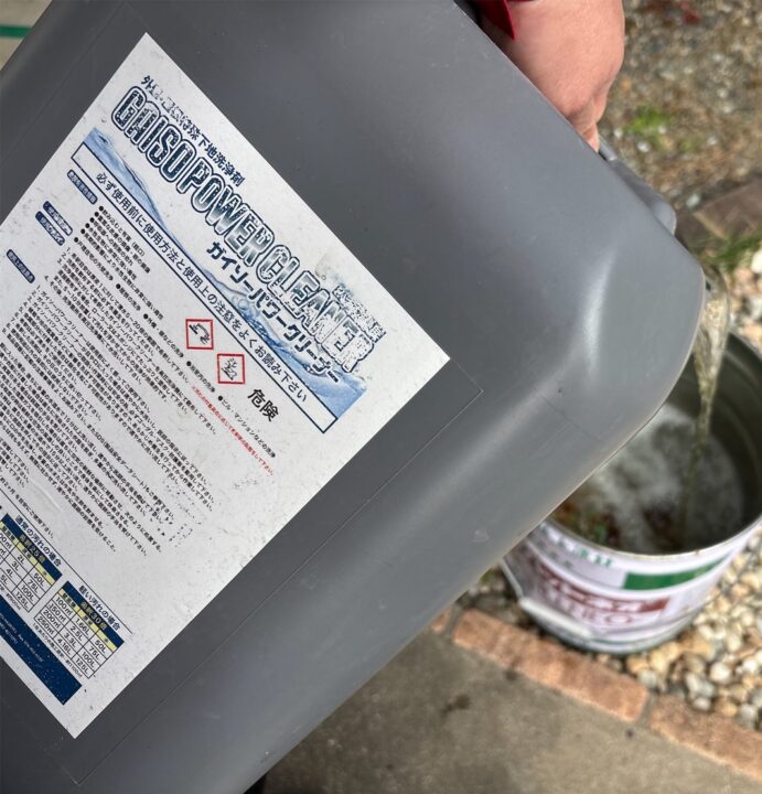 通常の高圧洗浄では落としきれない汚れやカビ等をバイオ洗浄で落とします。塗装前の大切な工程です。 -